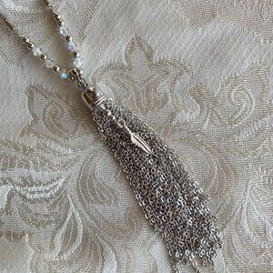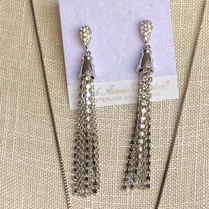 FAC Sparkly Opera Length Tassel Necklace & Earrings NWT