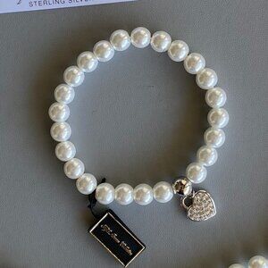 FAC White Faux Pearl Necklace Bracelet & Earrings Set