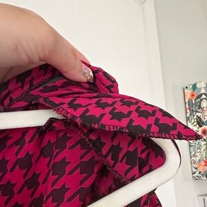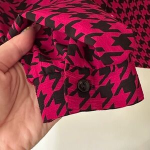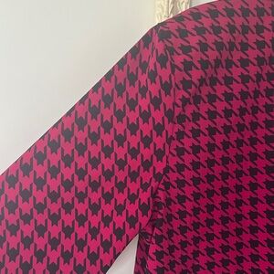 Elevate your wardrobe with this chic houndstooth women's top. Featuring a striking black and red pattern, this top is perfect for any occasion. Pair it with your favorite jeans or skirt for a fashionable look.