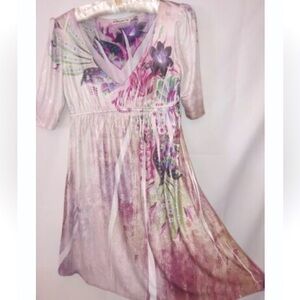FAIRYCORE SPARKLY WHIMSIGOTH FLORAL SILKY SHIMMER V NECK DRESS