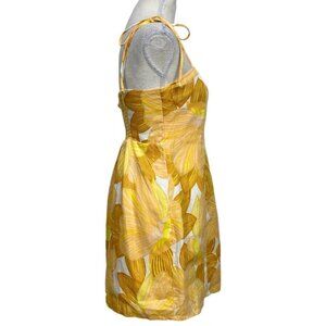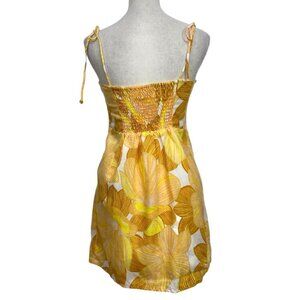 FAITHFULL THE BRAND YSLA 100% LINEN YELLOW FLORAL PRINT TIE SPAGHETTI STRAPS MINI DRESS / LA MARIETTA , Inspired by a summer spent along the coastline of Careyes, Faithull The Brand's effortless Ysla Mini Dress has been hand-printed in the sun-drenched La Marieta Floral Print. This style offers a square neckline, rolled over shoulder tie straps and a shirred panel through the back. Proudly crafted from a breathable, lightweight Linen - EUROPEAN FLAX® & OEKO-TEX100® Certified fabrication and lined throughout. Lined and not stretch yet has a smocked style in the back for an extensible adjustable comfy feature. Side zip closure. Mini 90s exotic vacation / trip beach vibe - summer favorite from cocktail to casual with flat sandals or heels - easy to dress up or down.