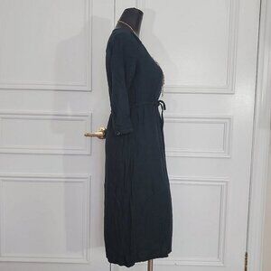 FALL- Old Navy button and tie waist Prairie Midi Dress in deep green/emerald
