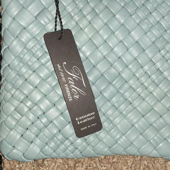 FALOR Firenze ITALY-Hand Woven Blue Green Leather Crossbody/Clutch/Shoulder Bag-NWT