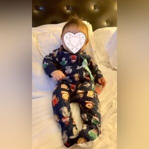 Pajama set for the family used for a family picture on New Year’s 2022. It was the. Washed, sanitized dried and stored. The pajama have no rips or stains and are in like new condition.