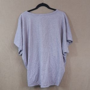 Polyester/spandex/rayon material make this adorable top super soft and easy to care for. Size M, this tie top by Fantastic Fawn is a very pale purple in color. Oversized top reminiscent of the Flasdance era!