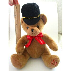 F.A.O. Schwarz Plush Stuffed Brown Sitting Teddy Bear Ribbon Black Hat Red Logo