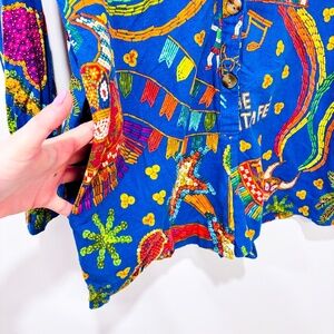 FARM RIO Blue Folk Party linen romper