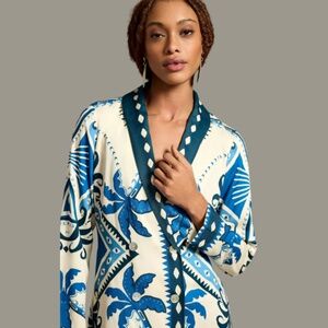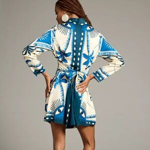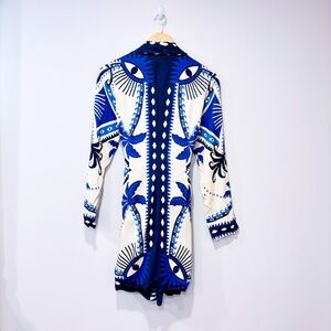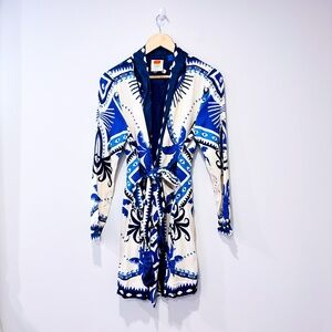 FARM RIO Long-Sleeve Blue & Cream Blazer Dress