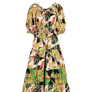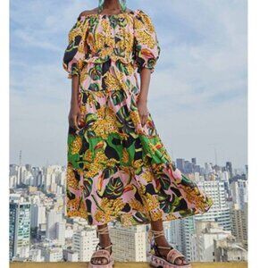 FARM RIO Toucananas Tiered Cotton Off-The-Shoulder Maxi Dress Small