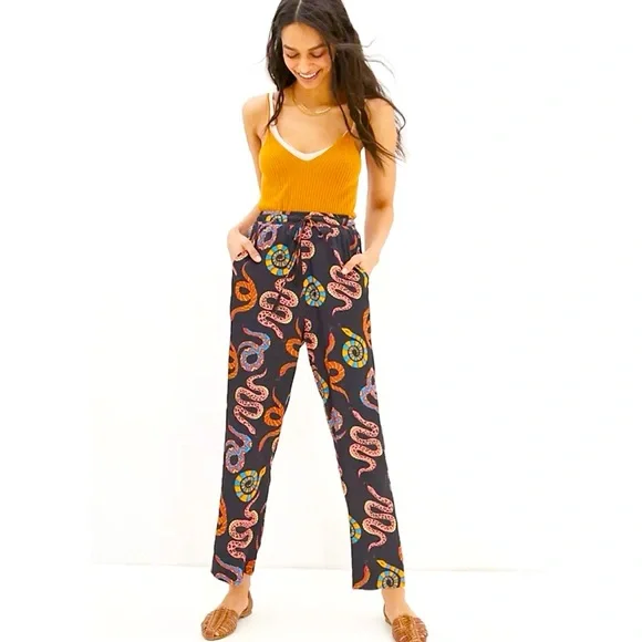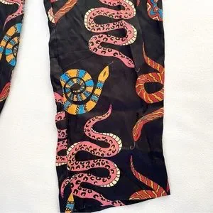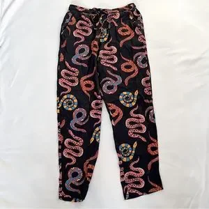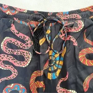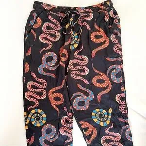 Vibrant snake print design. Elastic waistband. Comfortable fit. Perfect for casual outings.