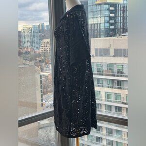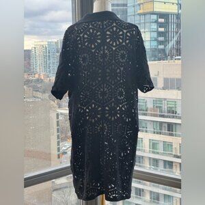 🆕 FARM Rio 🧿 NWOT Black Semisheer Floral Button-Up Crochet Cover-Up Dress, XL