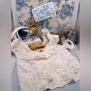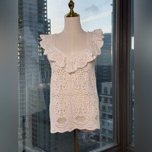 🆕 FARM Rio 🧿 NWOT Delicate White Crochet V-Neck Cami with Ruffle, Sz M