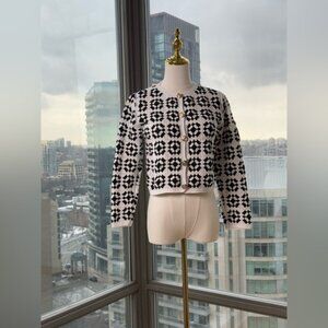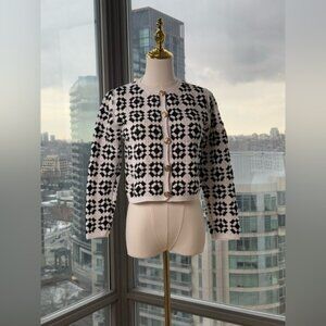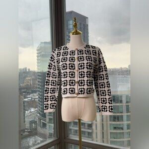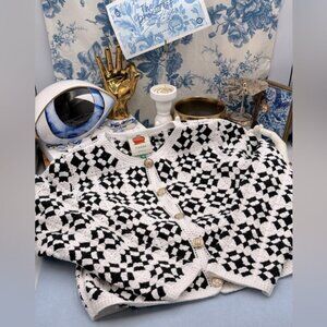 🆕 FARM Rio 🧿 NWT Patch Crochet Black & White Monochrome Button Up Jacket, Sz M
