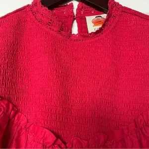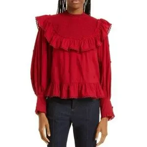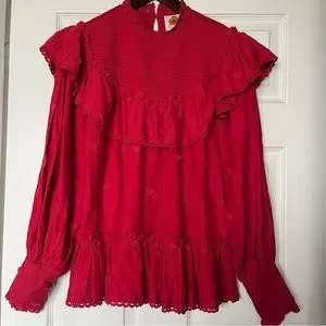 NWT's Elegant red blouse with ruffled details. Long sleeves and high neckline. Perfect for a chic look.
