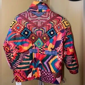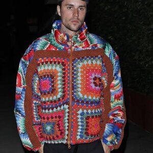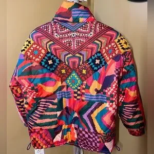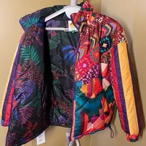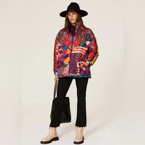 FARM Rio Reversible Patchwork Puffer Jacket with Crochet