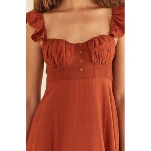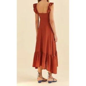 Elegant maxi dress with ruffled sleeves. Flowy hemline. Perfect for any occasion.