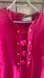 A fuchsia-coloured dress. Features gold buttons. Has a cut-out design on the arms. Buttons down the front. A perfect addition to your wardrobe to wear for a night out, or a simple work day.