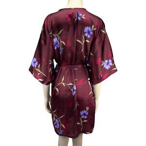 FASHION BUG Floral Red Kimono Robe Satin Knees Long Burgundy Color sz M