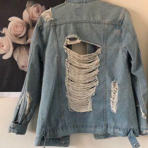 Very distressed denim jacket in great condition! Worn a few times.