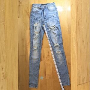 FASHION Nova Tempe Distressed High Rise Jeans Light Wash 3 G2