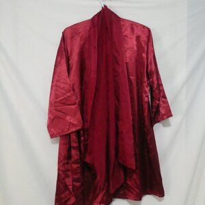 The robe features a rich, deep burgundy hue and a lustrous finish that exudes sophistication