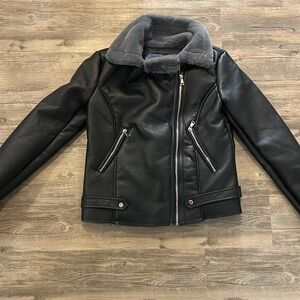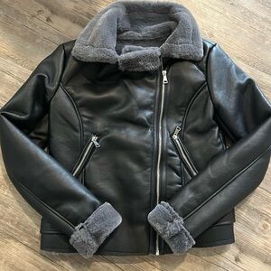 FAUX LEATHER FAUX FUR SHEARLING BIKER JACKET