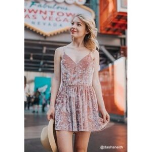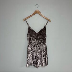 FAVLUX Romper Women's Size Medium Crushed Velvet Dusty Pink Beige Tank Shorts