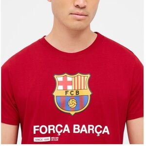 T-shirt with the FC Barcelona shield and the “Força Barça” lettering in relief on the front. Round neck. Short sleeve. Colour: red.