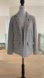 FDJ striped unstructured washable blazer in white and navy stripes. Flap pockets that are still unpicked. Open front with lapels. Two bonus pins on the lapel, red heart and white anchor. 65% polyester/33% viscose/2% elastane. Made in Canada.