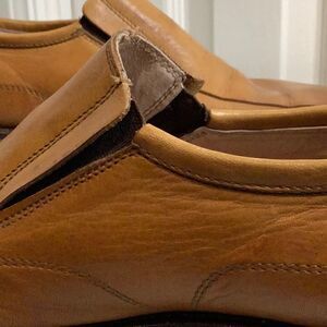 FEETFIRST MENS TAN LEATHER LOAFERS/SLIP ONS MADE IN ITALY SIZE 43