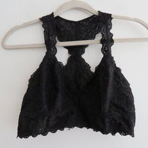 FELINA Lace Racerback Wireless Bra Bralette Stretch Black - Size Medium