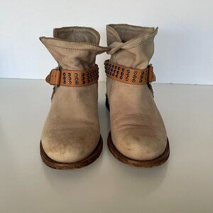 FELMINI Ankle Boots Nobuck Leather Buckle Studded Strap Pull-On Casual Tan 7