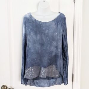 Femme fatale Sequin Trim Layered Silk tie dye Top Medium