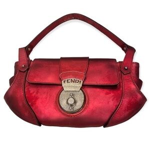 FENDI Authentic Metallic Red Leather Baguette Compilation