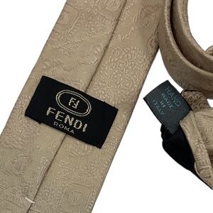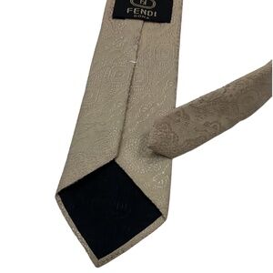 FENDI Beige Geometric Silk LUXURY Tie HANDMADE ITALY