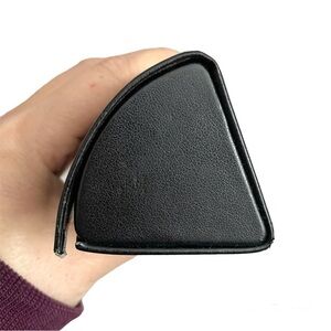 Opens on a diagonal with magnetic closure. Ideal for standard sized glasses or sunglasses, not oversized or wrap style