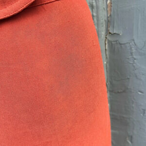 Beautifully draped Fendi Orange silk ruffle front skirt with raw hem edge.