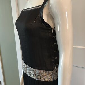 From the silver beads at neckline, the Fendi Zucca buttons at each side, the beautiful brocade insert, to the amazing tiered silk skirt, this is simply perfection.