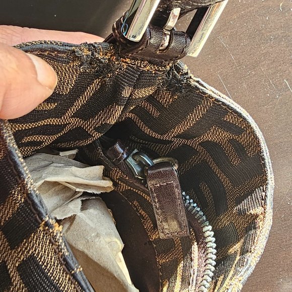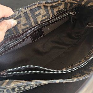 FENDI Zucca Canvas Leather Shoulder Bag Beige Brown