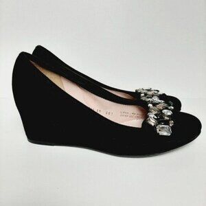 FERCA 81 Italy Jeweled Gem Suede Wedges Heels Black Shoes Sz 8.5 / Eur 39