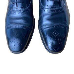 FERRAGAMO Caesy Black Leather Cap Toe Lace Up Brogue Oxford Italy US 10 2E