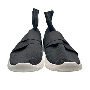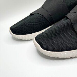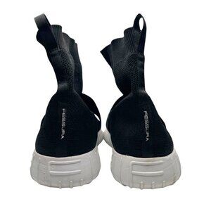 FESSURA MEN'S UNISEX BLACK WHITE OUTSOLE DINGHY LOW-TOP LIGHTWEIGHT TEXTILE SNEAKERS, Dinghy low-top sneakers from Fessura. Sock-fit silhouette. Made from black knit. Almond toe. Elasticated cross straps in black. Embossed logo at the heel. Extended heel pull. Durable rubber sole in white.