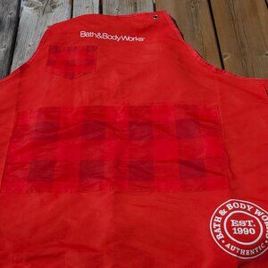 FESTIVE Bath and Body Works Employee Apron Red Gingham Pockets Tie Back Apron