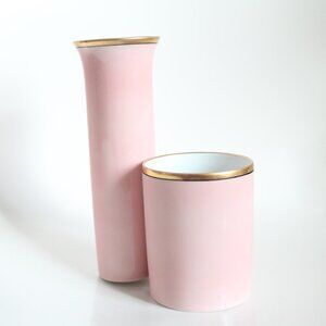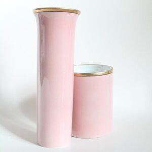 [FF] Matching Pink Cylindrical Vases with Golden Rims (Japan)