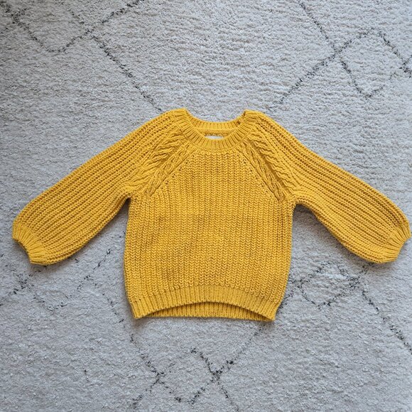 This warm, chenille sweater in yellow is for sale. New, without label! We got it as a gift, but my daughter didn't like it, never wore it. Recommended for ages 18-24 months according to the label. I'm happy to measure if you like.