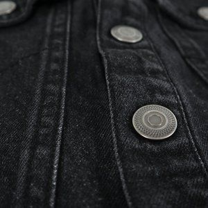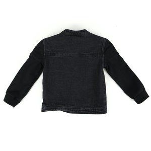 - Fierce Frank black denim jacket with soft shell sleeves.