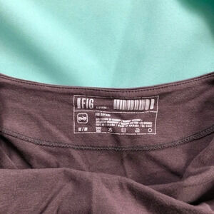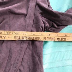 Part of the Safari collection by FIG. Grey tunic with draped neckline. Super soft stretchy fabric. Asymmetrical hemline. Not actually open in the front so you don’t have to worry about it opening, it’s just sort of a piece of fabric over top of a normal long sleeved. Grey colour. Size Medium. See measurements in photos. Good condition no rips or stains that I could see. Made of Bamboo Viscose and organic cotton. Made in Canada.