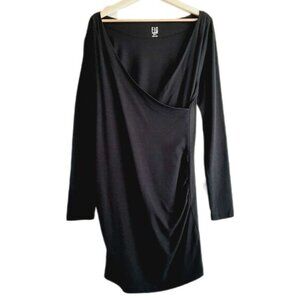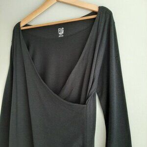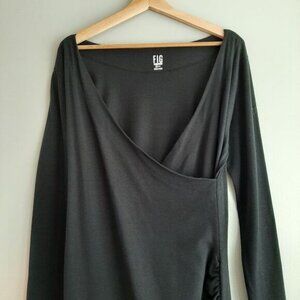FIG Safari Faux Wrap Long Sleeve Soft & Stretchy Dress Black Sz L
