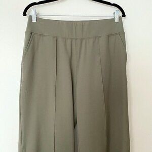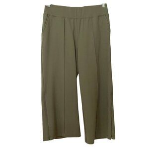FIGS CLOTHING WOMEN'S KIV STRETCH WIDE CROPPED LEG PIN-TUCK PANTS IN MUTED GREEN