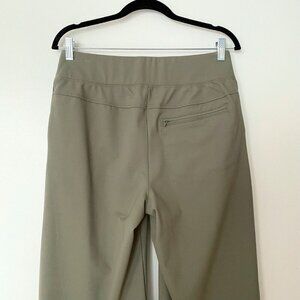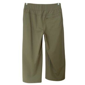FIGS CLOTHING WOMEN'S KIV STRETCH WIDE CROPPED LEG PIN-TUCK PANTS IN MUTED GREEN, Gaucho pants length 3⁄4 with pin-tuck at front, Features: